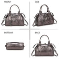 - * Sluiting: ritssluiting, met buiten- en binnenzakken voor optimale organisatie * Schouderriem: verstelbaar en afneembaar inbegrepen De Skyla Metallic Large tas biedt een ruime binnenkant die plaats biedt aan een laptop, uw cosmetica, uw telefoon en nog veel meer. De meerdere zakken, waaronder een voorvak met rits, zorgen voor gemakkelijke toegang tot uw kleine essentiële spullen. Met zijn afgeronde en gestructureerde vorm is deze tas zowel licht als comfortabel om te dragen, waardoor het de ideale keuze is voor al uw dagelijkse activiteiten.